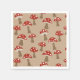Las setas rojas y blancas alegres bailan a lo largo de un cálido fondo neutro para un efecto festivo pero terrenal.