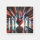 Una bola de boliche está en movimiento en una bolera con iluminación de neón