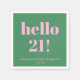 This personalized party napkin in pink and green features bold “hello 21!” typography in a clean, modern layout for a fun milestone birthday celebration. Customized with a name and date, it adds a playful yet polished touch to bar setups, dessert tables, or party place settings. The simple design works well for casual gatherings, cocktail parties, or backyard celebrations. A festive detail that helps tie the party decor together while marking a special birthday moment.