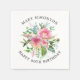 Elegante fiesta de cumpleaños número 90, servilleta personalizada. Las peonías de acuarela rosa toman el centro del escenario. El nombre de la persona de cumpleaños está curvado arriba y el cumpleaños 90 feliz está curvado debajo. Un proyecto hágalo usted mismo que crea un producto hermoso rápidamente.