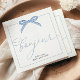 Con suaves tonos azules polvorientos, arcos azules y un guión elegante, este diseño combina perfectamente con cualquier celebración parisina o temática de coqueta.