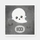 Una servilleta kawaii fantasma de Halloween con un fantasma de ojos grandes, murciélagos voladores y un texto negrita de "¡Boo!" en un fondo oscuro. Perfecto para fiestas de Halloween, celebraciones en el salón de clases o para agregar un toque tierno a tu mesa de fiestas.