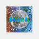 50 servilletas de papel blanco con una imagen de luces de disco rojas, azules y violetas, una brillante bola de disco espejo y "Boogie On" con letras azules y verdes del estilo de los años 70. Vea la servilleta de la cena de tela, toalla de cocina, placemat de tela, placemat de papel y posavasos. Vea toda la colección de Napkin Disco 70 en la FOOD/BEV | Sección de líneas.