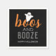 Las servilletas modernas y lindas de la fiesta de Halloween "Boos y Booze" presentan texto en naranja, gris carbón y letras blancas con un pequeño acento fantasma.