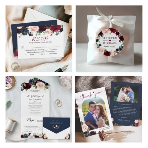 Recepción de Boda Floral Azul Borgoña Rojo Rubor / Napkin Fiesta. (1) Para una mayor personalización, haga clic en el botón "Personalizar" y utilice nuestra herramienta de diseño para modificar esta plantilla. (2) Si necesita ayuda o elementos coincidentes, póngase en contacto conmigo.