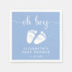 Cuidadas toallas de papel azul pastel para la ducha de bebé de tu hijo con "oh boy" en un guión blanco bonito con toallitas y una acuarela blanca de pies de bebé. Debajo se puede personalizar fácilmente con su nombre y fecha de ducha.