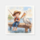 Servilleta De Papel Boy Fishing On a Dock With a Pelican