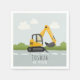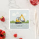 Este diseño de servilleta de cumpleaños lindo y moderno para niños incluye una excavadora amarilla y un lugar para que añadas el nombre y la edad de su hijo. Perfecto para cualquier niño que sueña con ser un constructor.