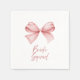 Este diseño presenta una estética suave y elegante. En la parte superior, hay una delicada proa de acuarela en un rosa mullido. Debajo de la proa, la frase "Bride Squad" está escrita en un elegante y fluido tipo de letra de guión, coloreado con un tono ligeramente oscuro de rosa que complementa el arco. El conjunto es limpio, encantador y elegante, lo que lo convierte en un gran accesorio para una fiesta nupcial. Sería perfecto para las damas de honor.