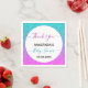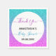 La servilleta de "agradecimiento", clara y colorida, para una ducha de bebé con un borde oscuro de rosa/ azul/ turquesa/ agua/ lila/ purpurina púrpura. Personalice añadiendo su propio texto, nombre y fecha de la ducha de bebé. Incluso puede cambiar el color de texto y el estilo de fuente mediante la opción personalizar.