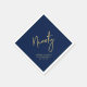 Esta servilleta de papel personalizada añadirá un detalle elegante a tu celebración de cumpleaños número 90. Este diseño presenta letras doradas elegantes "Ninety" con texto personalizado sobre un fondo azul marino. Las invitaciones y suministros para fiestas a juego están disponibles en mi tienda BaraBomDesign.