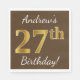 Este sencillo diseño de servilleta de papel muestra un mensaje como "¡27 cumpleaños de Andrew!", con el "27" en un falso aspecto dorado, en un fondo de color marrón. El nombre se puede personalizar. Podría ser usado en una fiesta de cumpleaños para alguien que está celebrando su cumpleaños veintisiete. [~Z0000082]