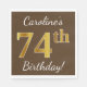 Servilleta De Papel Brown, Faux Gold 74th Birthday + Custom Name