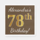 Servilleta De Papel Brown, Faux Gold 78th Birthday + Custom Name