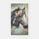 A horse's head with a lush mane. A beautiful brown horse among flowers.