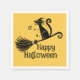 Servilleta De Papel Bruja Negra Gato en Escoba Halloween