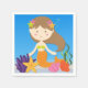 Las servilletas de papel de brunette Mermaid Birthday incluyen una sirena de bonito con el pelo castaño decorado con peces de estrella coloridos, cola de sirena naranja, pez estrella, algas marinas y el océano azul. ¡Tenemos los platos de papel de sirena y las invitaciones de cumpleaños!