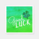 Buena Suerte Cuatro Hojas Chlover Shamrock St. Patrick's day napkins. Patrón verde abstracto moderno con tipografía blanca moderna cita la buena suerte y el trébol hecho a mano con cuatro hojas para la suerte.