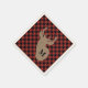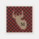 Las servilletas presentan un patrón de manchas rojas y negras (búfalo) en el frente. El centro cuenta con un ilustracion inspirado en la burrega de una silueta de cabeza de ciervo negro de 8 puntos. Personaliza la inicial en venado.