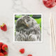 Un lindo búho con la cabeza en un lado y un ojo abierto y el otro cerrado. Un diseño fotográfico.