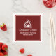 This professional realtor paper napkin is custom made with your real estate company name under the modern white cursive script for an open house. This chic burgundy realty business party decor features a house logo image for home builder or realty agent company marketing.