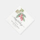 Tarjeta de vacaciones moderna para empresas con caligrafía elegante que dice FELICES FIESTAS bajo servilletas de papel con bayas de acebo y vegetación en acuarela.