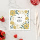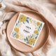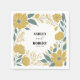 Una paleta de colores amarillos separa esta servilleta boda del resto. El diseño incluye un moderno ramo de flores y se puede personalizar todo el texto. Elementos de coordinación disponibles.