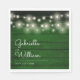 Diseño rústico con luces de cuerda de bonito y los nombres de la pareja alegre en un elegante guión sobre su fecha especial en un rústico fondo de paneles de madera verde esmeralda. Perfecto para bodas, compromisos y celebraciones de aniversario. Diseñado por Thisisnotme©