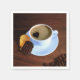 Una taza de ilustracion de café con una taza blanca de café caliente con humo en forma de corazón sobre un fondo marrón con tipografía en la pared.
