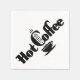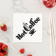 Las servilletas con letreros anticuados para el café caliente con una taza de café humeante.