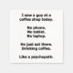 Por el amante del sarcasmo en todos nosotros. Mira este ingenioso "Hoy vi a un tipo en una cafetería. Sin teléfono. Sin tablet. No hay laptop. Él se sentó ahí. Beber café. Como un psicópata". Diseño de prendas y regalos.