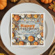 Esta servilleta de papel personalizable de Acción de Gracias presenta un cálido diseño otoñal. El fondo es un rústico motivo de tablero de madera gris, enmarcado por naranjas de plumón y calabazas blancas, hojas de otoño coloridas y ramas torcidas. El centro muestra "Feliz Día de Acción de Gracias". Lo más importante es que la servilleta es totalmente personalizable, lo que le permite añadir un nombre familiar o un mensaje personal debajo del saludo. Esto lo convierte tanto en un accesorio práctico de mesa como en un recuerdo único y memorable para su celebración de vacaciones.