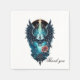 Calavera impresionante y realista, exudando un aura mística. Majestuoso par de grandes alas tipo plumas en tonos azules y negros que dan al diseño un movimiento dinámico. En general, este diseño combina elementos de oscuridad y luz, vida y muerte, fuerza y fragilidad. Cuenta una historia de transformación y libertad mientras captura la belleza de lo desconocido.