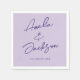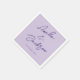 Modernas y elegantes servilletas de boda con un sencillo y elegante guión escrito a mano púrpura en un fondo lila. Personalizar con sus detalles únicos.