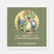 Crea divertidas toallas de papel personalizadas para un fiesta de camping. El diseño presenta un bonito dinosaurio tomando café al aire libre (u otras bebidas calientes como té, cacao, etc.) La plantilla facilita escribir el nombre de su familia u otro texto. Este diseño está decorado con un fondo verde oliva.