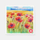 campo de espantapolas brillantes, de fondo amarillo, horizonte azul, acuarela, flores
