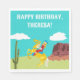 Añade un toque occidental a tu fiesta de cumpleaños u otro evento especial con estas servilletas de papel personalizadas. Están listos para ser personalizados con tu propio mensaje y cuentan con un ilustracion de estilo campestre y retro de una vaquera montando un caballo a través de un paisaje occidental.