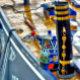 Diseño artístico de un techo de barca estrecha con chimenea ornamentada. lata de agua y popa. Los barcos del canal, conocidos en el Reino Unido como barcos estrechos, se utilizaron originalmente para transportar mercancías por todo el país. Ahora se utilizan principalmente para el ocio y atraen a personas de todo el mundo para disfrutar de nuestro campo rural. Estos barcos parecen muy bonitos con sus camarotes de colores vivos, azules, rojos o verdes. Flores y diseños de castillo también adornan los barcos más tradicionales.