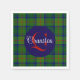 servilletas de papel, con el colorido patrón de lona tartán Cranstoun / Cranston del clan escocés. Un disco redondo azul, en el centro, tiene un monograma de una sola letra hecho en rojo, y el nombre del señor hecho en blanco, y están listos para personalizar. Genial para cualquier reunión.