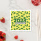 Los tapones verdes de los bosques que se tiran al aire hacen un bonito diseño en estas servilletas de papel para una fiesta de graduación de un graduado de la escuela secundaria, la universidad o la universidad. Límites verdes para la graduación en un fondo amarillo. Personaliza con el año de graduación y el nombre del estudiante.
