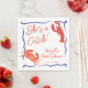 Caprichoso Servilletas para Desayuno Nupcial Costero Rojo y Azul - Una idea de decoración para desayuno nupcial con tema náutico y costero con ilustraciones de acuarela de langosta roja y cangrejo rojo contra un marco caprichoso de garabatos azul marino. Con letra manuscrita y texto en bloque elegante en tonos de azul oceánico. Perfecto para un desayuno nupcial con tema de Maine o Nantucket, desayuno nupcial con tema de pesca o lago, almuerzo nupcial con tema de mariscos o lluvia de regalos para una boda con tema de playa y océano. Eleva tus decoraciones de desayuno nupcial con una servilleta personalizada que grite que es verano.
