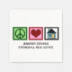 Cute personalizado de la servilleta para una casa abierta que se personaliza con una empresa inmobiliaria y el nombre del agente de un inmueble. Paz, amor y casas. Divertido artículo de marketing con un signo de paz, corazón y nuevo hogar.