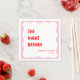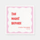 Fije el tono para sus festividades pre-bodas con esta servilleta de ensayo, que incluye la frase caprichosa "La noche antes" en letras rojas audaces. El borde ondulado rosa le da un toque divertido y moderno, lo que lo convierte en la adición perfecta a su moda y a su elegante evento. Ideal para futuras novias y planificadores de bodas que buscan añadir un toque de color y personalidad a su cena de ensayo o reunión pre-boda. Personalizable con tus nombres y fecha, esta servilleta te asegura que tu celebración es tan única como tu historia de amor.