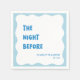 Eleve su cena de ensayo con nuestras elegantes servilletas de cócteles azules y blancos con un divertido personalizable y borde ondulado. Perfecto para las celebraciones de "La noche antes", estas servilletas le dan un toque personal a sus festividades pre-bodas. Ya sea que esté organizando una reunión informal o una cena elegante, el diseño minimalista y la relajante paleta de colores garantizan que complementen cualquier tema. Personalízalos con tus nombres y fecha de boda para que los invitados se amen. Ideal para cenas de ensayo, fiestas de compromiso o reuniones de bodas, estas servilletas hacen la noche antes de inolvidable.