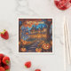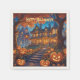 Esta servilleta tiene una mansión espeluznante en el bosque con ventanas iluminadas rodeadas de muchas calabazas. ¡Perfecto para tu fiesta de Halloween! Texto personalizado.