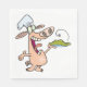 Un chef de cerdo con un plato de comida. Este diseño parece realmente efectivo en estas servilletas de papel