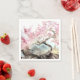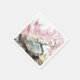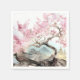 Un majestuoso pavo real junto a pájaros coloridos, situado en un entorno sereno de montaña con delicadas flores de cerezo en plena floración.