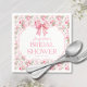 Servilletas y artículos de papelería para cumpleaños nupcial con lazo rosa y estilo chic deslucido. Hermoso patrón de rosas suaves y femeninas con diseño de lazo rosa coqueto. Hermosa invitación de cumpleaños nupcial para la futura novia. Vibraciones vintage, preppy y de niña femenina perfectas para su celebración especial de cumpleaños nupcial.