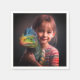 Estas servilletas tienen un chica con un lagarto sobre ellas.