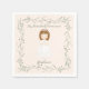 Chica de la comunión rezando Este hermoso y dulce diseño de la Primera Comunión de una niñita morena rezando pacíficamente en su día especial está en un fondo de melocotón pálido y sabio. Acentuado con un marco de hoja de flores silvestres. Aprecie los grandes recuerdos de la primera comunión sagrada de su hijo con este hermoso diseño. Echa un vistazo a los accesorios, papel y regalos de comunión de la Primera Comunión que coinciden.